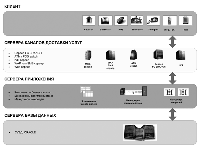 Таким образом, АБС FLEXCUBE позволяет использовать для связи с клиентом практически любой из существующих на сегодняшний день каналов. При этом сохраняется основное свойство системы – централизованная обработка данных по единым правилам. Это очень важно, так как независимо от точки обслуживания, любая операция в системе будет выполнена и учтена единственно возможным способом. Важным преимущест¬вом такого подхода является возможность доставки по каналам всей продуктовой линейки, определенной в системе. Кроме того, в указанной архитектуре система FLEXCUBE обеспечивает для клиентов доступность в режиме 24х7x365.